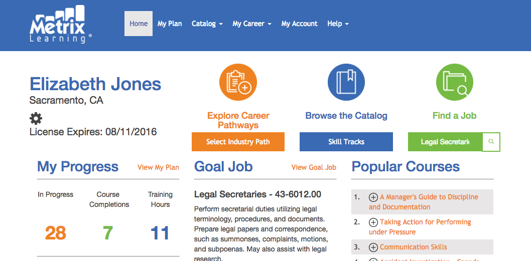 The Career Pathways program is delivered through the Metrix Learning platform. It is designed to help you evaluate your skills, get training, and search for jobs.